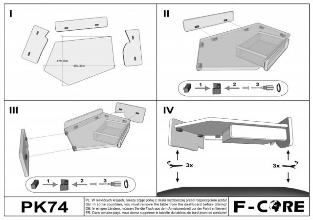 - VOLVO FH 4 (01.2013-12.2019) Masă bord cu sertar pentru camion VOLVO FH4. Faceți camionul mai practic și estetic cu ajutorul unor mese de bord de înaltă calitate. Sunt confecționate din lemn și țesătură presată, care, datorită calității sale, pot împodobi interiorul camionului pe mai mulți ani. În plus, acesta masa bord are propriul sertar, care este o soluție ideală pentru a pune acolo portofel, documente sau bani. Mese dimensionale care se încadrează perfect în camionul dumneavoastră. Nu necesită nicio altă fixare. Ideal pentru stocarea laptopurilor, televizoarelor, documentelor. Se livrează gata asamblat. Instrucțiuni pentru montare, șuruburi, cheie hexagonală incluse. Instalarea durează doar câteva minute.