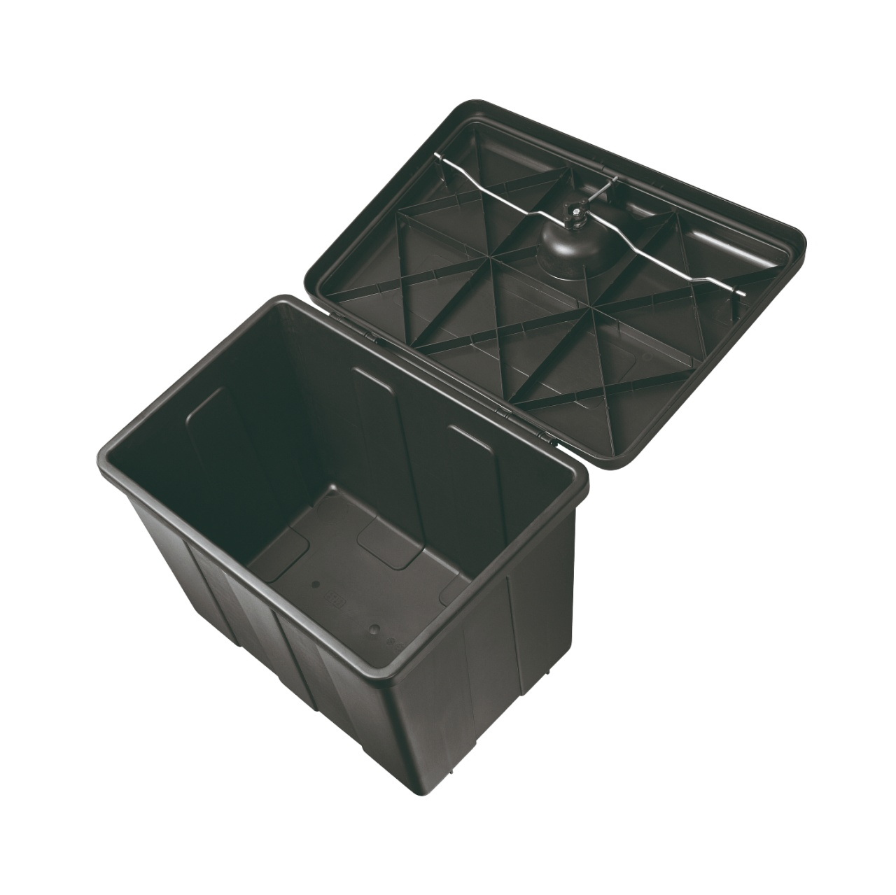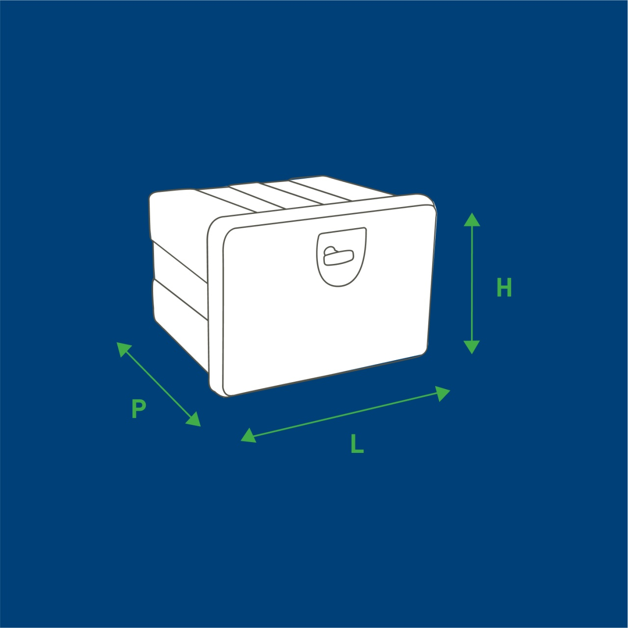 L : 800 P : 450 H : 500 Cutie de scule, turnată prin injecție din polipropilenă copolimerică. Potrivită pentru uz auto. Respectă standardul ECE R73.01 - Dispozitiv de protecție la impact lateral. Beneficii și caracteristici tehnice Mâner Deschidere și închidere în mai multe puncte Total ermetic Etanș, datorită capacului înfășurat și etanșării impermeabile Balama Ranforsată. Mecanică de înaltă rezistență Chiar și la temperaturi scăzute. Tratament Anti-UV pentru o durată de viață mai lungă. Personalizări Logo serigrafiat. Suporturi disponibile la cerere. Asamblare Instalare rapidă și ușoară