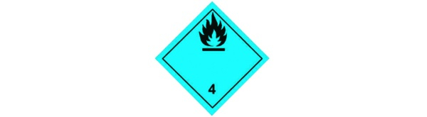 250x250mm Etichetarea mărfurilor și vehiculelor care conțin mărfuri periculoase. Substanțe care pot fi expuse la autoaprindere spontană și emit gaze inflamabile la contactul cu apa. Solidele inflamabile sunt materiale care se găsesc în diferite condiții în transport și sunt ușor inflamabile. Materialul poate provoca sau contribui la incendiu prin frecare, substanțe autoreactive care pot suferi o reacție puternic exotermă sau un exploziv solid desensibilizat. În plus, substanțele care pot fi expuse la încălzire spontană în condiții normale de transport, sau la încălzire în contact cu aerul și astfel riscă să ia foc. De asemenea, substanțele care emit gaze inflamabile sau devin spontan inflamabile atunci când intră în contact cu apa.