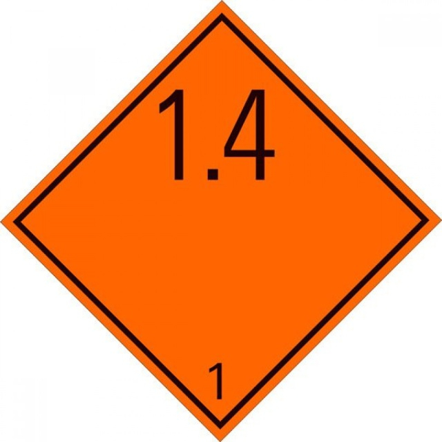 Eticheta ADR clasa 1.4 aluminiu Transport substante si obiecte explozive (300x300mm)