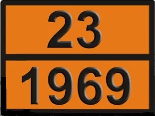 Tablă marcaj ADR pentru transport Izobutan Dimenisuni: 300 X 400 mm Folie: reflectorizanta de culoare portocalie in chenar negru cu inscriptiile 23/1969