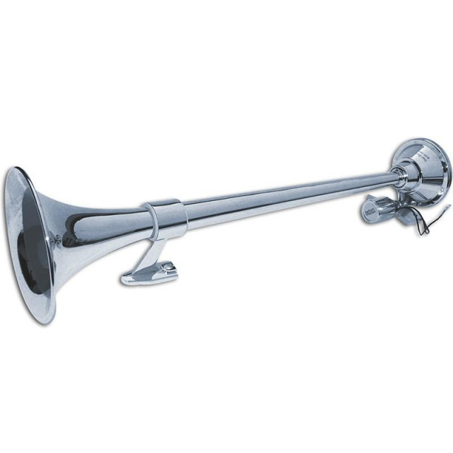 Claxon goarna crom 640mm 12-24V , cu electrovalva Culoare crom Lungime 640mm Cu electrovalva 12-24V Vine fara compresor aer, se conecteaza la compresorul de aer existent pe masina