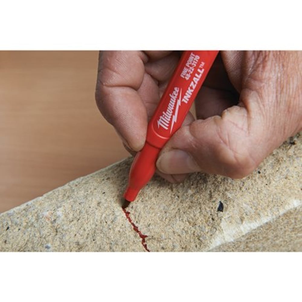 Marker pentru santier INKZALL™, cu varf fin rezistent, care te ajuta sa scrii pe suprafete prafuite, umede sau uleioase; Ramane ascutit si nu se turteste cand este apasat; Varful acrilic, durabil, este ideal pentru suprafete aspre ca OSB, beton, deasemeni potrivit pentru marcarea pe lemn, metal, plastic si ceramica; Cerneala se usuca rapid pentru a reduce petele. Cu toate acestea markerele INKZALL™ continuua sa scrie chiar si dupa 72 de ore atunci cand capacul nu a fost pus; Design anti-rasucire pentru o buna aderenta pe suprafetele netede; Clip pentru agatarea la casca de protectie, pantaloni sau salopete; Gaura pentru atasarea unei cureluse; Vopsea non-toxica, certificare ASTM D 4236.