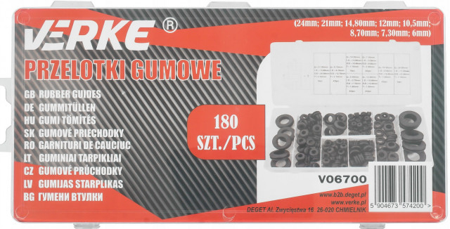 Ghiduri din cauciuc VERKE, ambalate într-un ambalaj convenabil de tip „sortare”.