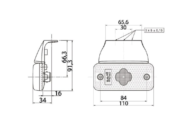 Lampă de culoare galbenă (portocalie) cu tehnologie LED pentru marcarea lateralelor remorcilor și semiremorcilor. Lampa include un suport din plastic flexibil. Tensiune: 24V Sursa: LED Bec: 2 LED-uri Culoare: Chihlimbar / Portocaliu Conector: AMP JPT 2 pini Direcția de montare: orizontală Distanța șurubului de fixare: 30 mm