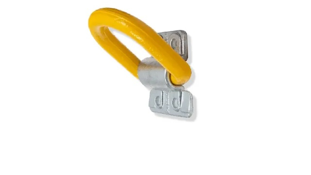 Inel de ancorare cu suport înșurubabil, din oțel galvanizat, cu o capacitate maximă de 12 tone Montajul trebuie facut cu ajutorul a 4 șuruburi metrice clasa 10.9 de 12 mm (șuruburile de ancorare nu sunt incluse).