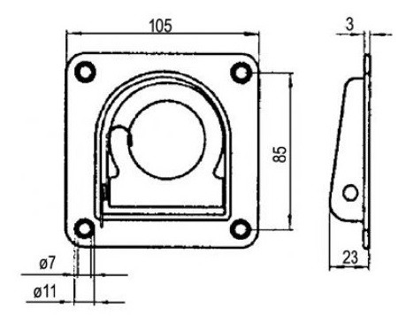 Inele de ancorare a marfii pentru camioane si remorci montabile pe podea sau pe rama suprastructurii dimensiune: 105 X 105 mm capacitate: 2 tone