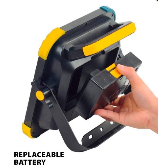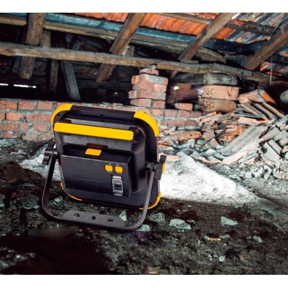 PROIECTOR DE LUCRU FOARTE PUTERNIC WOTAN de la STAK by Velamp este un reflector LED reincarcabil de 30W, ideal pentru iluminarea zonelor extinse, atat in interior, cat si in exterior, acolo unde nu exista sursa de curent. Bateria Li-ion de 7.4V / 5000mAh, cu indicator de incarcare, se reincarca complet in 4,5 ore. 3 TREPTE DE LUMINOZITATE Pentru a echilibra performanta si autonomia, proiectorul permite selectarea a 3 niveluri de intensitate: 100% (autonomie 3h) 50% (autonomie 6h) 10% (autonomie 15h) Pentru autonomie extinsa, este disponibila o baterie suplimentara optionala (cod: BATTST224), astfel incat sa ai intotdeauna una gata de utilizare. REZISTENT LA SOCURI SI CAZATURI Lanterna portabila WOTAN este fabricata din policarbonat de inalta calitate, oferind rezistenta ridicata la impact si caderi (certificare IK08). Ideala pentru santiere, ateliere, fabrici si medii dure. POWERBANK SI DIFUZOR BLUETOOTH INTEGRAT Incarca-ti telefonul sau tableta direct de pe santier, atelier sau in timpul lucrului in aer liber. Conecteaza cablul USB la portul de 2A. Difuzorul Bluetooth integrat (2x5W) ofera sunet clar si se conecteaza usor la telefon – poti asculta muzica chiar si fara sa folosesti lumina! REZISTENT LA APA SI INTEMPERII Clasificare IP54 – rezistenta la apa si conditii meteo nefavorabile. Vine insotit de incarcator 220V si adaptor auto 12V, pentru incarcare oriunde te-ai afla. Detalii produs Nume produs : WOTAN Alimentare : AC/DC Alimentator inclus : DA (adaptor 220V + adaptor auto 12V) Tip baterie : 18650 Li-ion 5000mAh Tehnologie LED : 2835 SMD LED Putere : 30W Lumeni : 3000 Temperatura de culoare : 6500K Unghi fascicul : 110° Distanta iluminare : 20 m Durata viata LED : 30.000 ore Materiale : Plastic – policarbonat Reglaj intensitate : DA Clasa izolatie : III Protectie la apa : IP54 Rezistenta mecanica : IK08 Functii suplimentare : Bluetooth speaker, Powerbank Culoare : Negru Comutator : DA Greutate neta : 1,932 kg Dimensiuni produs : Latime: 260 mm Inaltime: 265 mm Adancime: 100 mm