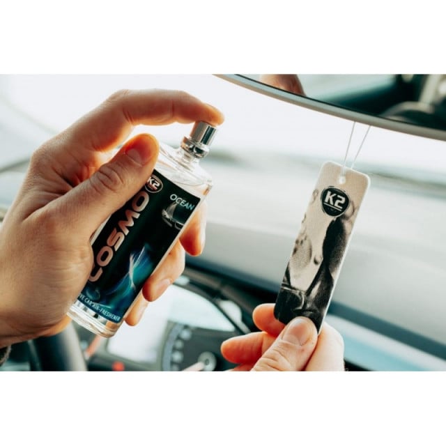 Cel mai eficient odorizant de aer din atomizor. Pentru toți cei care nu își decorează mașina cu odorizante, dar vor să aibă o aromă unică în interiorul mașinii. Datorită K2 Cosmo veți descoperi o lume de parfumuri uimitoare, inspirate de pasiunea pentru industria auto. Compoziția subtilă a aromelor de aer K2 Cosmo elimină și respinge toate mirosurile nedorite. Utilizarea K2 Cosmo permite aplicarea directă și intensă a parfumului, ceea ce ne permite să oferim interiorului un caracter unic. Utilizare: Pulverizați la o distanță de 30 cm de locul în care este utilizat Aplicați parfumul pe elemente materiale și tapițate Nu se aplică direct pe componente din piele Poate fi răspândit în aer