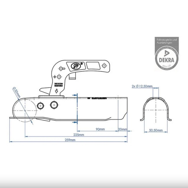 - Pentru bară de remorcare/țeavă de remorcare de 50,5 mm