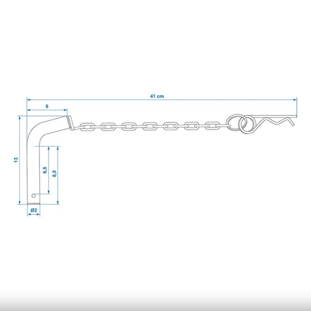 Specificatii: - Lungime pin: 13 cm - Pin Ø 20 mm - Lant Ø 2,76 mm - Lungime lanț: 26,5 cm