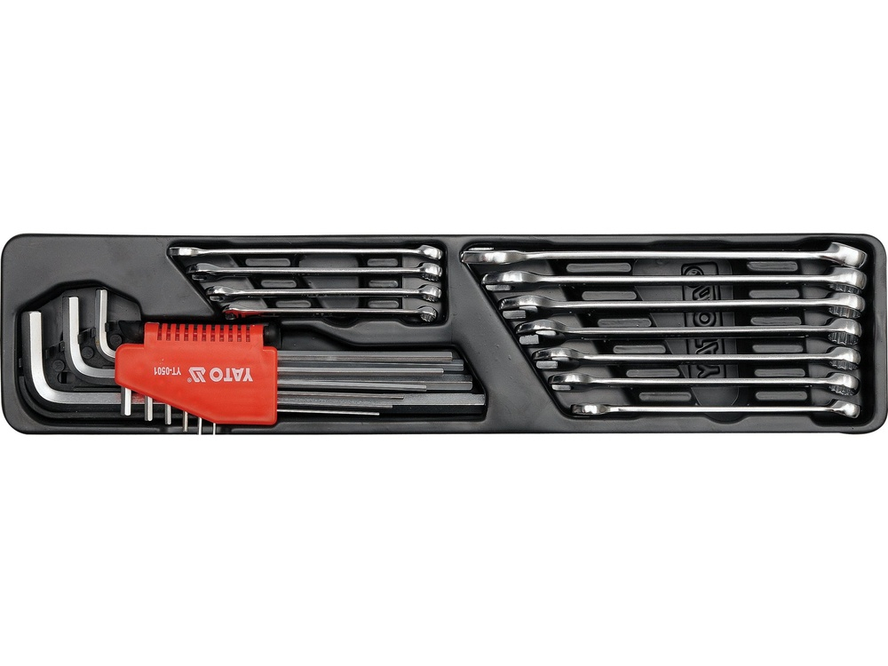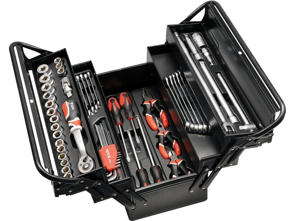 Cutia contine: Tubulare de 1/2" cu lungimea de 38 mm în dimensiune 10, 11, 12, 13, 14, 15, 16, 17, 18, 19, 20, 21, 22, 23, 24 Tubulare de 1/2"", în lungime de 42 mm în mărime de 27, 30, 32mm Cheie pentru bujii 1/2"" 21mm Articulatie cardanic 1/2"" Prelungitor 1/2"" 76, 127, 254 mm Prelungitor în formă de T 1/2"" 255mm Prelungitor de forta 1/2"" 450 mm Clichet 72T 1/2" oțel CrV6140 Chei imbus 1.5, 2, 2.5, 3, 4, 5, 6, 8, 10 Cleste combinat 180mm Cleste cu varf lung 160mm Clește taietor 160 mm Surubelnițe plate 6x100, 6x150, 8x200mm Surubelniță cruce: PH2x100, PH3x150, PH3x200mm Chei combinate 6, 7, 8, 9, 10, 11, 12, 13, 14, 15, 16, 17, 18, 19, 20, 21, 22, 24"