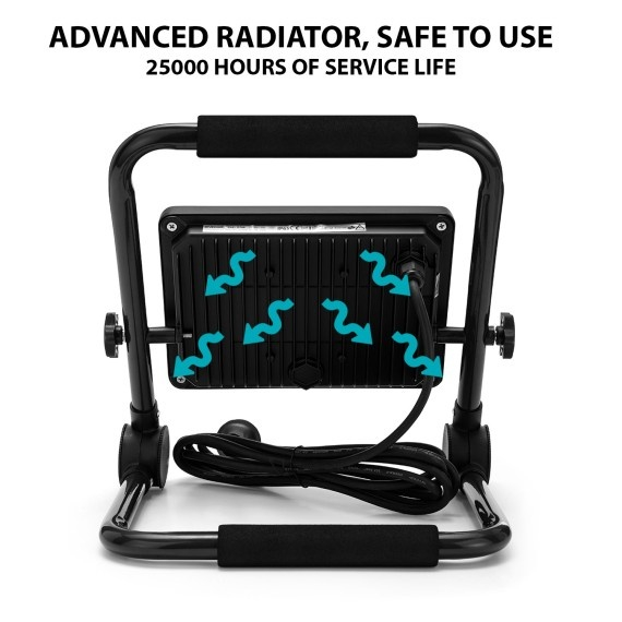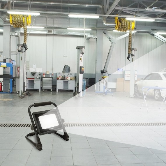 Putere: proiector LED de 50W cu consum redus si 4000 lumeni, ilumineaza santierul cu lumina alba naturala (4000K), asigurand conditii optime de lucru chiar si in aer liber (IP65); durata medie de viata: 25.000 ore; clasa energetica F, consum redus. Utilizare versatila: proiectorul Velamp este ideal pentru utilizare in aer liber, pe santier, in atelier, in gradina, la camping sau in garaj; rezistent la apa, potrivit atat pentru interior, cat si pentru exterior. Usor de folosit: suport metalic pivotant cu maner captusit pentru transport usor pe santier; baza larga pentru stabilitate sporita; usor si ultra-plat cand este pliat. Simplu: lampa este echipata cu cablu de alimentare din neopren de 3 metri (H05RN-F 3G1.0mm²), compatibil cu prizele europene (stecher schuko). Economisire de spatiu: proiector portabil si pliabil, usor de depozitat si transportat. Detalii produs Alimentare: 220V AC Baterii incluse: NU Tip alimentare: CABLU DE ALIMENTARE Tehnologie lumina: LED SMD 2835 Consum (W): 50 Lumeni: 4000 Temperatura culoare (K): 4000K Indice redare culoare (CRI): >80 Fascicul lumina: DIFUZ Unghi fascicul: 120° Durata viata LED (ore): 25000 Materiale: ALUMINIU Reglaj intensitate: NU Clasa de izolatie: I Lungime cablu (cm): 300 Tip cablu: H05RN-F 3G1.0mm² Culoare: NEGRU Intrerupator: NU Grad protectie (IP): IP65 Functii: PORNIT / OPRIT Bec inclus: DA Garantie: 2 ANI Latime produs (mm): 300 Adancime produs (mm): 280 Inaltime produs (mm): 40